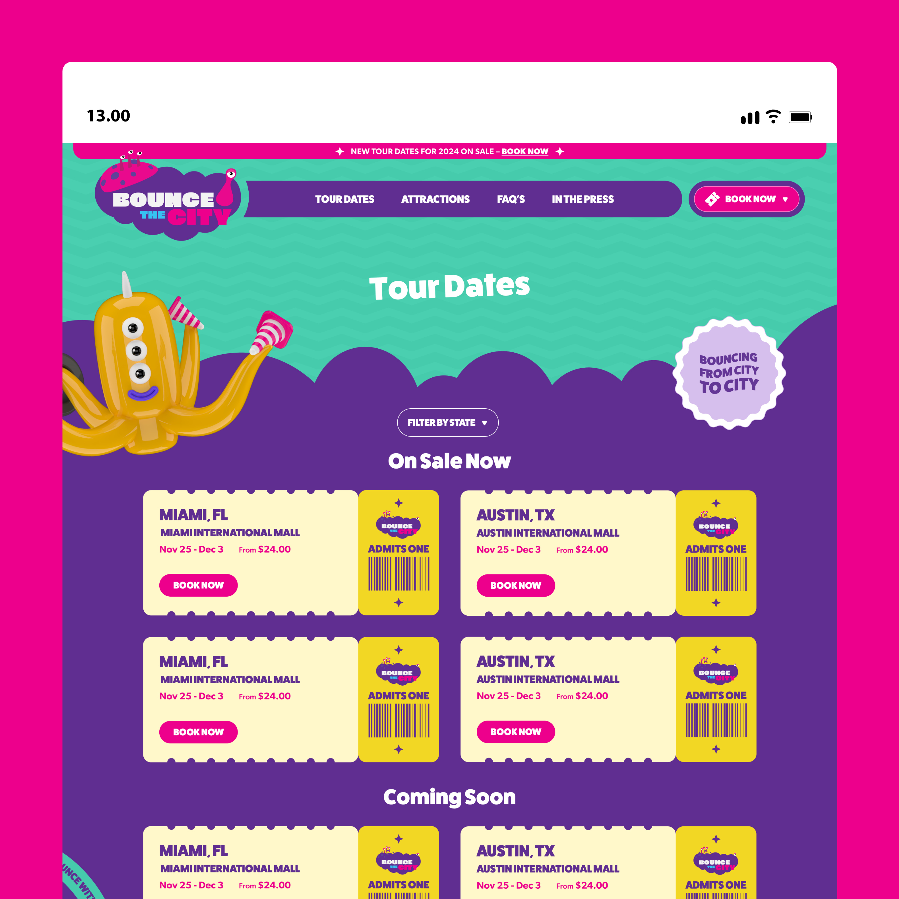 Design of a responsive web experience for one of the world's most renowned touring soft play providers.